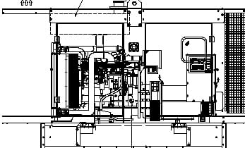 Diese Abbildung zeigt die Draufsicht eines stationären 250 kVA Aggregates.